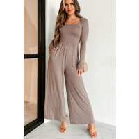 Cutting Corners Square Neck Wide Leg Jumpsuit (Mocha) Small