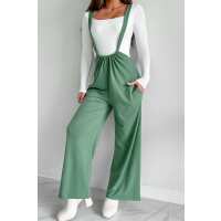 Message Received Wide Leg Suspender Jumpsuit (Military Green) Small
