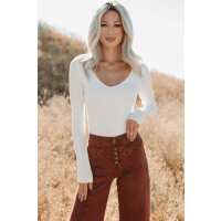All That Is Good V Neck Long Sleeve Top (Ivory) SMALL