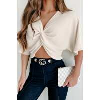 Deeja Twist-Front Ribbed Top (Oatmeal) Small