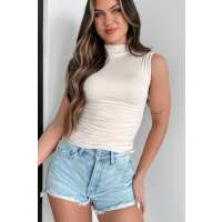 Nothing But Time Side Ruched Sleeveless Top (Natural) Medium