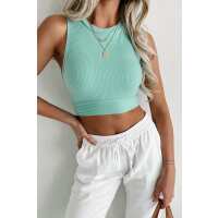 Never A Dull Moment Ribbed Open Back Crop Top (Seafoam) Small