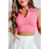 Hampton Summers Sleeveless Polo Crop Top (Hot Pink) Small