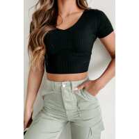 Make It Count Sweater Knit V-Neck Crop Top (Black) Small