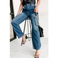 Get To The Point Wide Leg Cargo Jeans (Medium Denim) Small