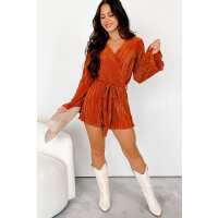 Thankful Hearts Long Sleeve Plisse Romper (Rust) MEDIUM
