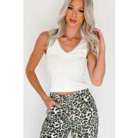 Bed Of Roses Ribbed Lace Trim Tank Top (White) MEDIUM