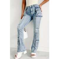 At War With Myself Mid-Rise Cargo Flare Jeans (Light Stone) 1