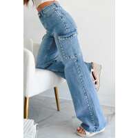 Beatrix High Rise Pearl Cargo Jeans (Medium Stone) 1