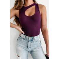 Loving The Journey Asymmetric Cut-Out Bodysuit (Dark Purple) Small