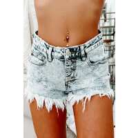 Doing You A Favor High Rise Distressed Frayed Hem Acid Wash Shorts (Light) Small