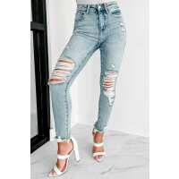 Izetta High Rise Distressed Risen Slim Straight Jeans (Light) 1/25