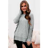 Soft Hearted Brushed Knit Boxy Tunic Top (Heather Grey) Small