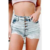 Maxwell High Rise Button-Fly Distressed Denim Shorts (Light Stone) Small