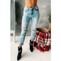 Cathy Flying Monkey High Rise Distressed Boyfriend Jeans (Medium) 24