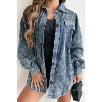 Finished With Love Corduroy Acid Wash Shacket (Vintage Denim) Small