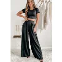 Soul Mates Solid Crop Tee & Palazzo Pant Set (Black) Small