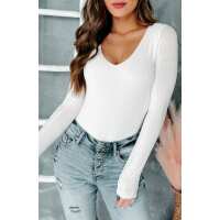 Keeping It Simple Ribbed Long Sleeve Bodysuit (Ivory) Small