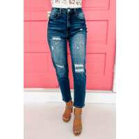 Ruby High Rise Distressed Mom Jean (Dark) 0/24