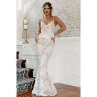Enchanted Love Embroidered Lace Mermaid Gown (Off White) Small