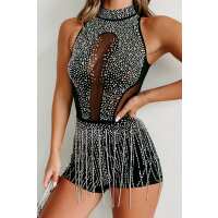 Seriously Shiny Rhinestone/Fringe Mesh Romper (Black) Small