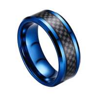 Mens Blue Tungsten Wedding Ring – Carbon Fibre Inlay Bevelled | Engraved Personalised Band – Newman Bands – Clarity