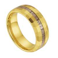 Mens Gold Tungsten Wedding Ring – Hammered with Antler Inlay | Engraved Personalised Band – Newman Bands – Splendour
