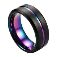 Mens Black Tungsten Wedding Ring – Rainbow Groove Pride Band | Engraved Personalised Band – Newman Bands – Unity