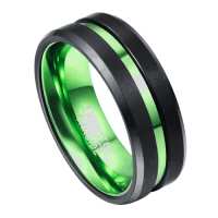 Shamrock - Mens Tungsten Wedding Ring Black and Green Band Engraved Personalised Engagement Eternity Promise Gift