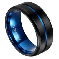 Unswerving - Mens Titanium Wedding Ring Black and Blue Band Engraved Personalised Engagement Eternity Promise Gift