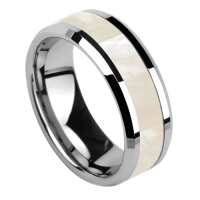 Intuitive - Mens Tungsten Wedding Ring Mother of Pearl Band Engraved Personalised Engagement Eternity Promise Gift