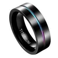 Ambience - Mens Titanium Wedding Ring Black with Iridescent Groove Band Engraved Personalised Engagement Eternity Promise Gift