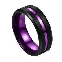 Roxo - Mens Tungsten Wedding Ring Black and Purple Band Engraved Personalised Engagement Eternity Promise Gift