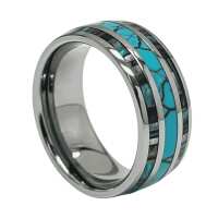 Rio - Mens Tungsten Wedding Ring Silver Abalone Shell and Turquoise Band Engraved Personalised Engagement Eternity Promise Gift