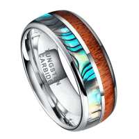 Elements - Mens Tungsten Wedding Ring Abalone Shell and Wood Band 8mm Engraved Personalised Engagement Eternity Promise Gift