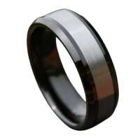 Swift - Men's Tungsten Ring - Silver and Black Men's Wedding Band Engagement Ring 8mm