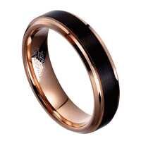 Florence - Mens Tungsten Wedding Ring Black and Rose Gold Band Engraved Personalised Engagement Eternity Promise Gift