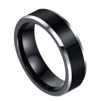 Storm - Mens Titanium Wedding Ring Black with Silver Edges Band Engraved Personalised Engagement Eternity Promise Gift