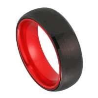 Amado - Mens Tungsten Wedding Ring Black and Red Band Engraved Personalised Engagement Eternity Promise Gift