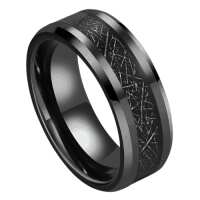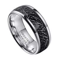 Gallant - Mens Tungsten Wedding Ring Silver with Black Faux Meteorite Band 8mm Engraved Personalised Eternity Promise Gift