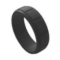 Tempo - Mens Silicone Ring Charcoal Grey with Block Pattern Comfortable Flexible Rubber Wedding Engagement Eternity Promise Gift