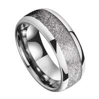 Universe - Mens Tungsten Wedding Ring Silver with Faux Meteorite Band 6mm or 8mm Durable Engagement Eternity Promise Gift
