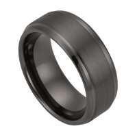 Mens Gunmetal Grey Tungsten Wedding Ring – Brushed Centre Polished Stepped Edges | Engraved Personalised Band – Newman Bands – The Western