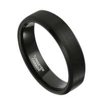 Mens Black Tungsten Wedding Ring – Brushed Matte & Polished Bevelled Edges | Engraved Personalised Band – Newman Bands – Strength