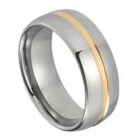 Mens Silver & Gold Tungsten Wedding Ring – Polished with Gold Groove | Engraved Personalised Band – Newman Bands – Embrace
