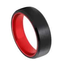 Mens Black & Red Tungsten Wedding Ring – Brushed with Bevelled Edges | Engraved Personalised Band – Newman Bands – Amado