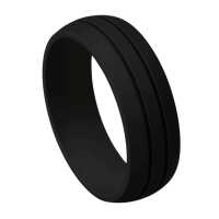 Mens Black Silicone Ring – Double Groove Comfort Fit 8mm | Hypoallergenic Flexible Band – Newman Bands – Vigour