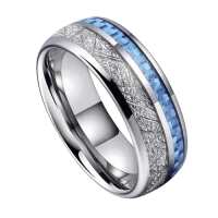 Mens Silver Tungsten Wedding Ring – Meteorite & Blue Carbon Fibre Inlay | Engraved Personalised Band – Newman Bands – Trailblazer