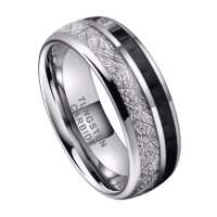 Orbital - Mens Tungsten Wedding Ring Silver with Faux Meteorite and Black Carbon Fibre Band 8mm Engraved Personalised Eternity Promise Gift