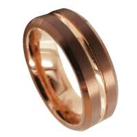 Mens Brown & Rose Gold Tungsten Wedding Ring – Brushed with Rose Gold Groove | Engraved Personalised Band – Newman Bands – Eagle